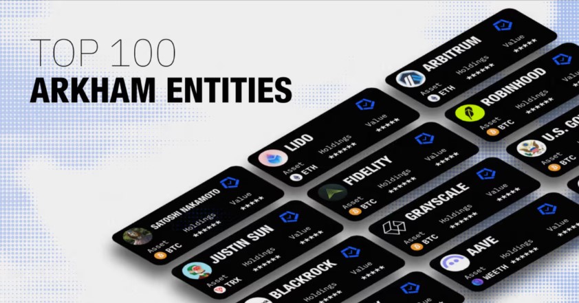 - 전 세계 가상자산 보유 상위 100개 리스트 : https://info.arkm.com/research/top-100-arkham-entities-usd