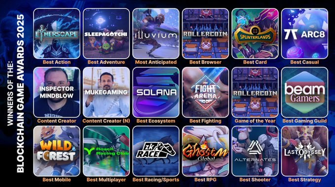이번 어워드에서는 '올해의 게임(Game of the Year)'에 웹 브라우저 기반 채굴 시뮬레이션 게임 '롤러코인(Rollercoin)', '가장 기대되는 게임(Most Anticipated Game)'에 '일루비움(Illuvium)', '최고의 생태계(Best Ecosystem)' 부문에 '솔라나(Solana)'가 각각 선정됐다.