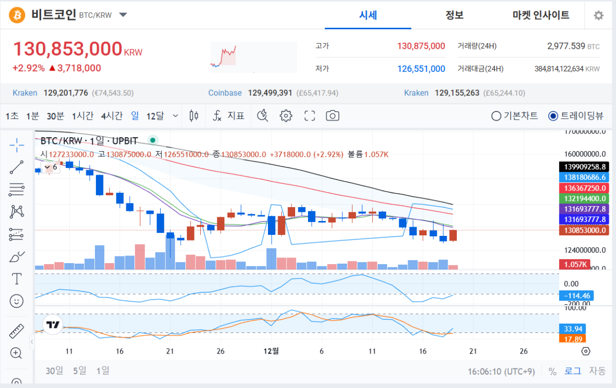 ◇비트코인 = 19일 오후 4시 업비트 기준 비트코인 가격은 1억 3,085만원이다. 비트코인 점유율(도미넌스)은 59.82%를 나타냈다.