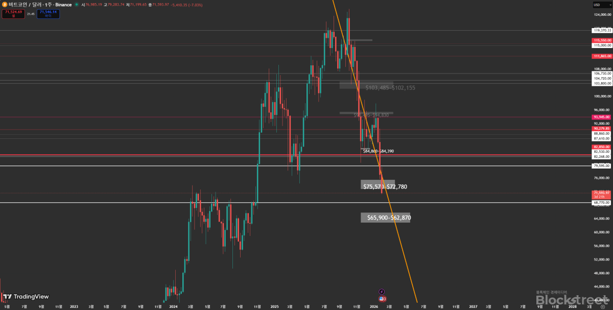7.2만 달러 이탈하며 시장 참여도 급락·코인베이스 프리미엄 마이너스…美 연준 정책 불확실성 유동성 압박
