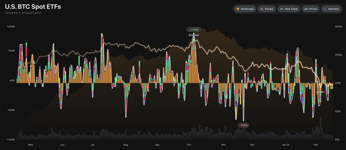 18일 비트코인 현물 ETF는 총 1억 3,423만 달러의 순유출을 기록했다. 블랙록의 IBIT가 8,516만 달러(한화 1,236억 원)로 가장 큰 유출을 보였으며, 피델리티의 FBTC가 4,907만 달러(한화 712억 원)의 유출을 기록했다.