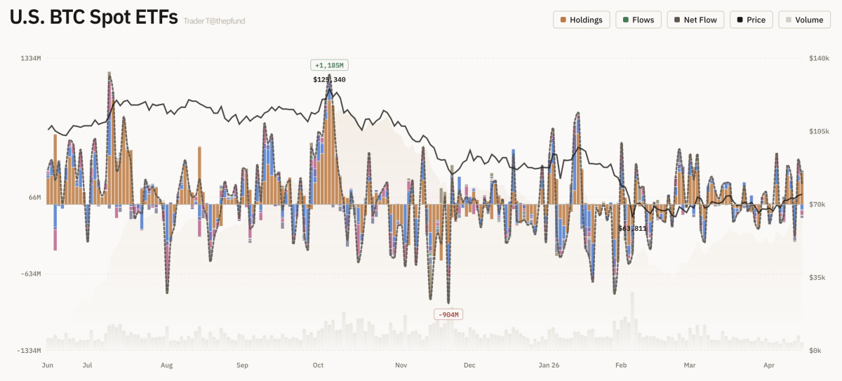 반면 피델리티 FBTC는 4,735만 달러(한화 704억 원), 아크 인베스트 ARKB는 4,222만 달러(한화 628억 원)의 순유출을 기록했다.