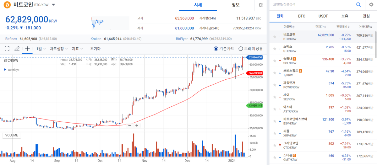 비트코인, 오전 6300만원 돌파…알트코인도 반등 성공