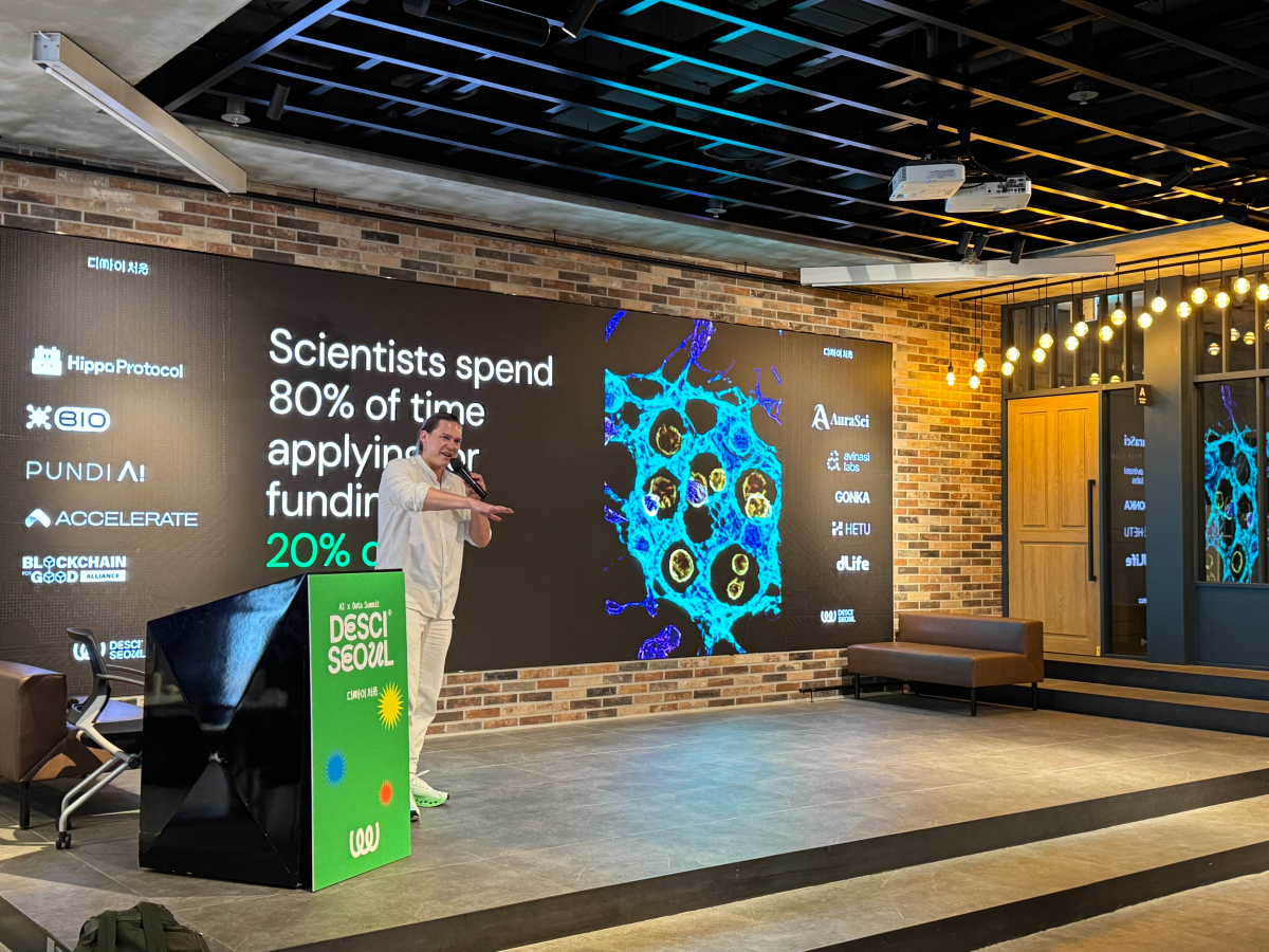 한국을 대표하는 탈중앙 과학(DeSci) 행사 '디싸이 서울 : 인공지능 데이터 서밋'이 지난 달 22일 성황리에 막을 내렸다. 해당 행사는 AI와 데이터, 웹3가 융합된 혁신의 장으로 자리매김하며 지난해 대비 참석자가 5배 이상 증가하는 기록을 세웠다.