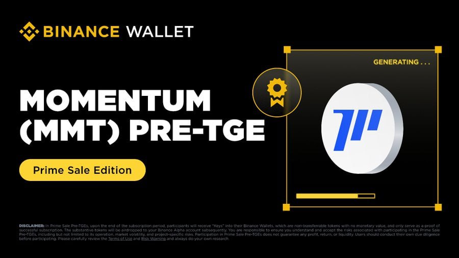 수이 네트워크 기반의 탈중앙화 거래소(DEX) 모멘텀(Momentum)이 바이낸스 월렛(Binance Wallet)을 통해 토큰 생성 이벤트(TGE) 이전 특별 세일을 진행한다.전일 모멘텀에 따르면 31일 오후 6시부터 8시까지 2시간 동안 바이낸스 월렛에서 두 번째 'Pre-TGE 프라임 세일'을 실시한다. 이번 세일은 TGE 이전에 모멘텀(MMT) 토큰을 선구매할 수 있는 기회를 제공하기 위해 마련됐다.