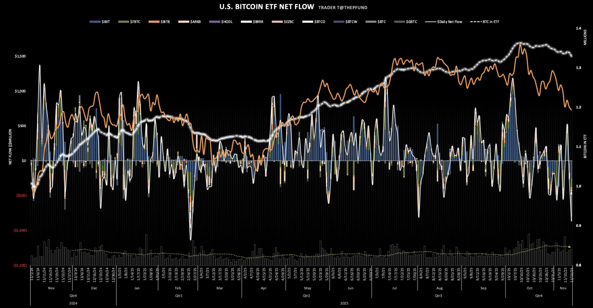 美 비트코인 현물 상장지수펀드(ETF) 시장에서 전일 사상 두 번째로 큰 규모의 자금 유출이 발생했다.전일 비트코인 ETF 시장 데이터에 따르면, 이날 전체 비트코인 ETF에서 총 8억 6,735만 달러(한화 1조 2,640억 원)의 순유출이 기록됐다. 이는 비트코인 현물 ETF가 출시된 이후 두 번째로 큰 자금 이탈 규모다.