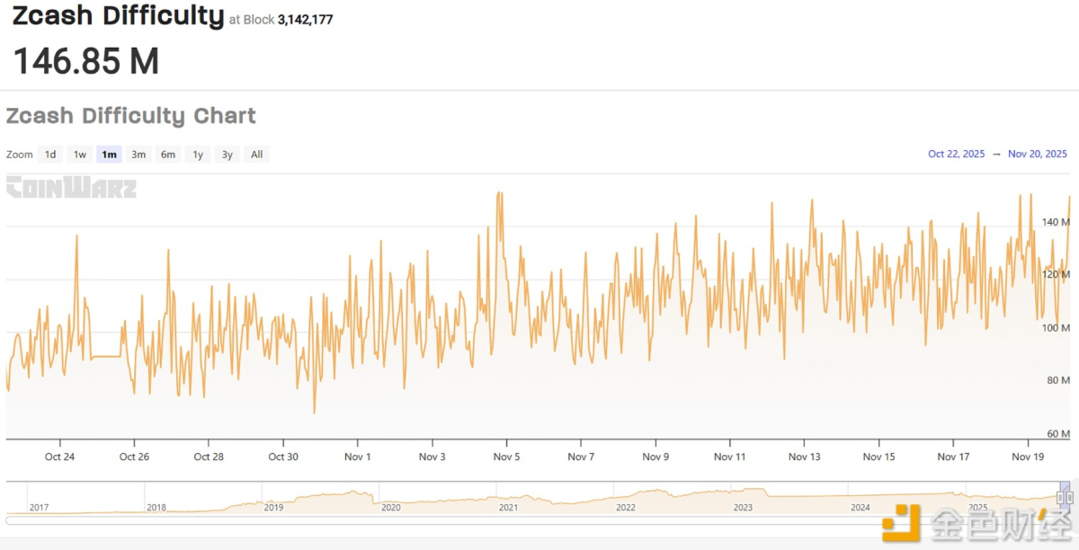 금색재경(金色财经)이 금일 보도한 코인워즈(CoinWarz) 최신 데이터에 따르면 지캐시(Zcash·ZEC)의 일일 채굴 수익이 온건한 상승세를 보이고 있는 것으로 나타났다. 전체 네트워크 해시레이트(연산력) 변동과 코인 가격의 소폭 반등이 수익 개선의 주요 요인으로 분석된다.현재 지캐시의 평균 일일 채굴 수익은 전일 대비 소폭 상승하며 채굴자들의 단기 심리가 안정세를 찾고 있다. 이는 최근 암호화폐 시장의 변동성 속에서도 지캐시 채굴 생태계가 일정한 회복력을 보이고 있음을 시사한다. 채굴자들은 수익성 개선 신호에 긍정적으로 반응하며 관망 자세를 유지하고 있는 것으로 전해진다.