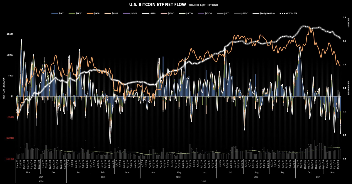 트레이더T(TraderT) 모니터링에 따르면 20일 현물 비트코인 ETF에서 9억 400만 달러(한화 1조 3,284억 원), 현물 이더리움 ETF에서 2억 6,066만 달러(한화 3,830억 원)가 순유출되며 투자자들의 대규모 환매가 이어졌다. 이는 비트코인 ETF 출시 이후 역대 두 번째로 큰 유출 규모다.