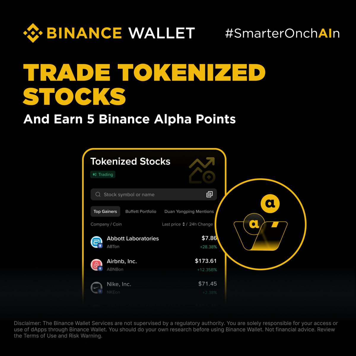 바이낸스, 토큰화 주식 거래 이벤트 3일 종료…"50달러 이상 구매 시 알파 포인트 지급"