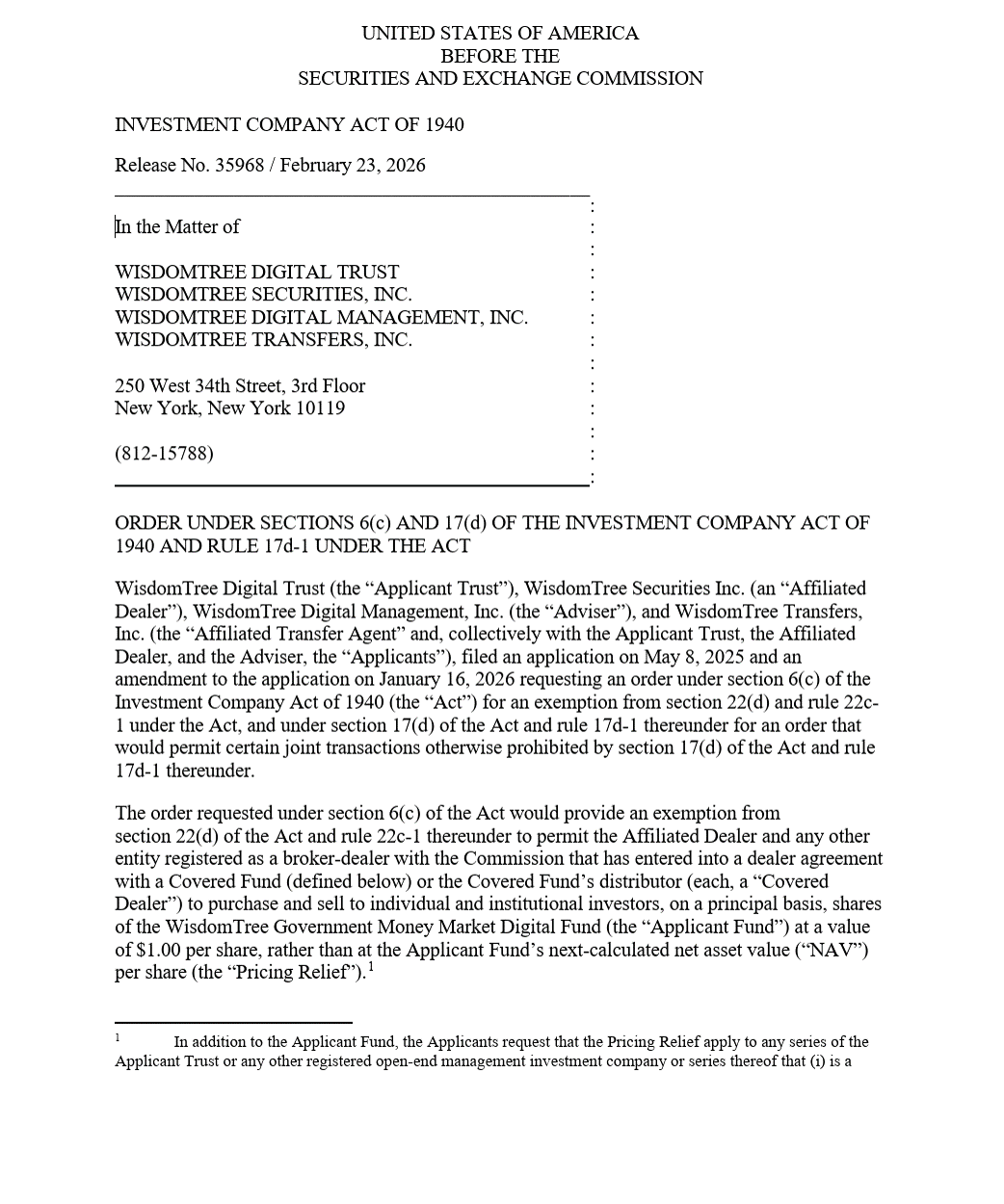 - 美 SEC의 위즈덤트리에 대한 규제 면제 승인 전문 : chrome-extension://efaidnbmnnnibpcajpcglclefindmkaj/https://www.sec.gov/files/rules/ic/2026/ic-35968.pdf