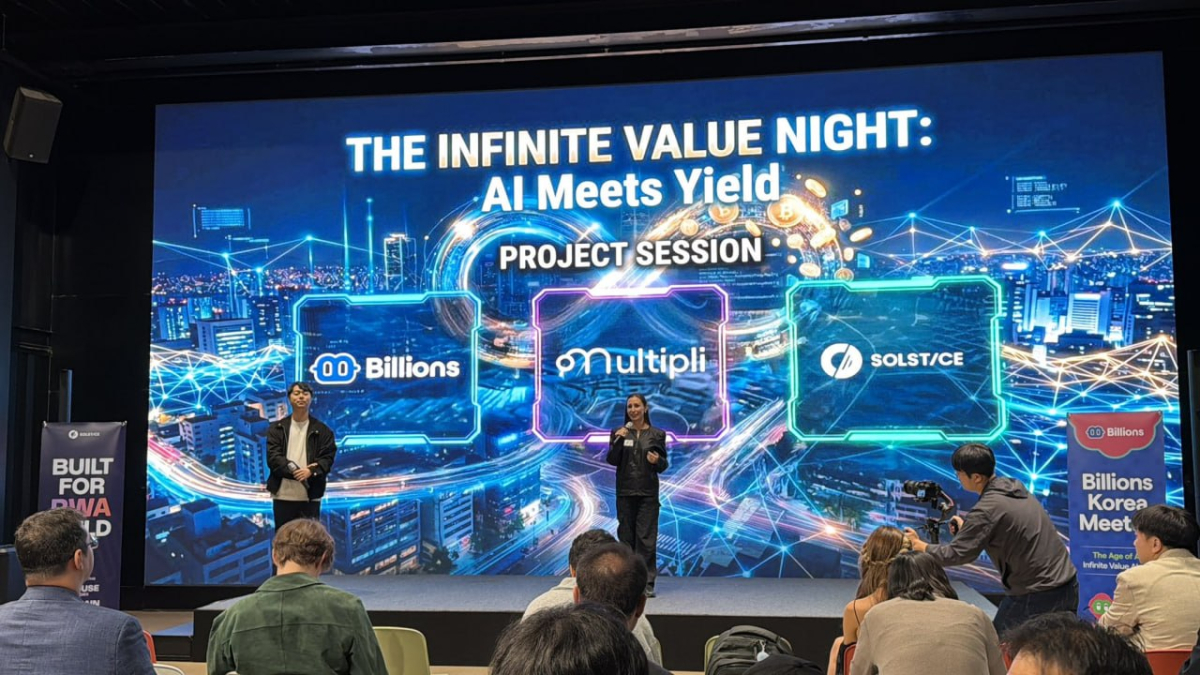 지난 주 '비들 아시아(Buidl Asia) 2026' 주간을 맞아 17일 서울 SJ 쿤스트할레에서 열린 프리미엄 네트워킹 행사 'The Infinite Value Night: AI Meets Yield'가 성황리에 마무리됐다.이번 행사는 프라이버시 중심의 영지식(ZK) 신원 증명 프로토콜 빌리언즈 네트워크(Billions Network), 멀티체인 일드 프로토콜 멀티플라이(Multipli), 일드 최적화 디파이 플랫폼 솔스티스(Solstice)가 공동 주최했다.